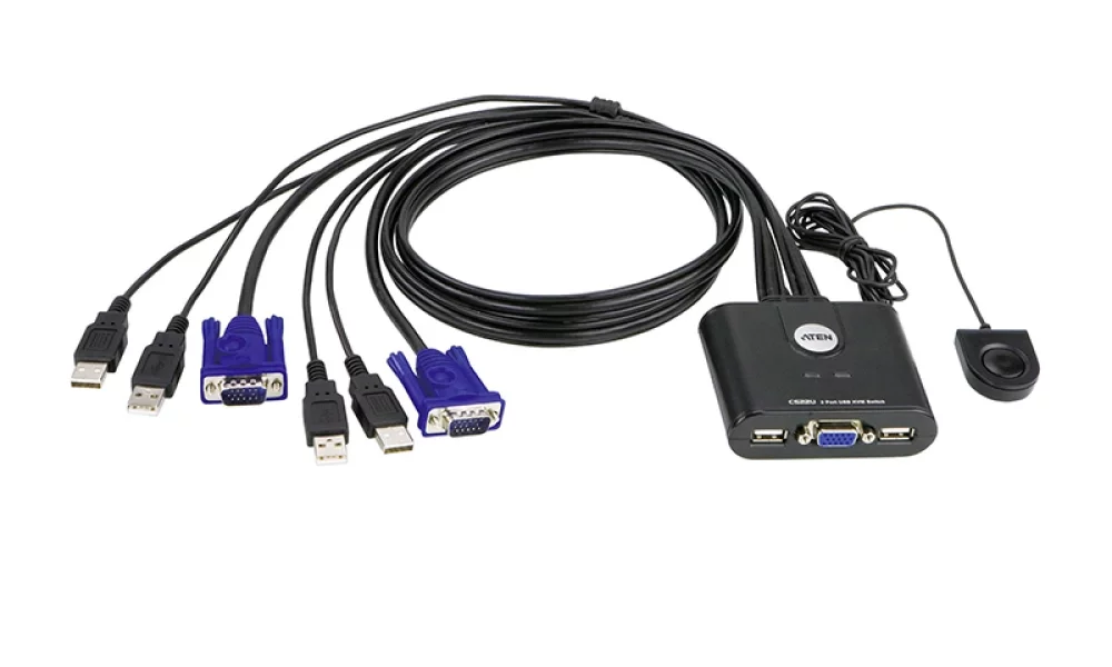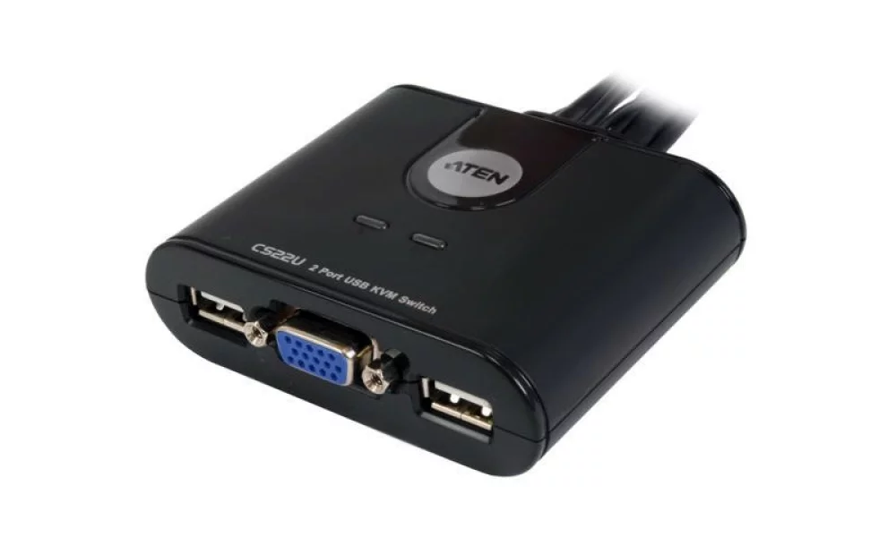 - سوئیچ VGA دو پورت آتن CS22U امکان اتصال همزمان دو منبع VGA به یک نمایشگر را می دهد