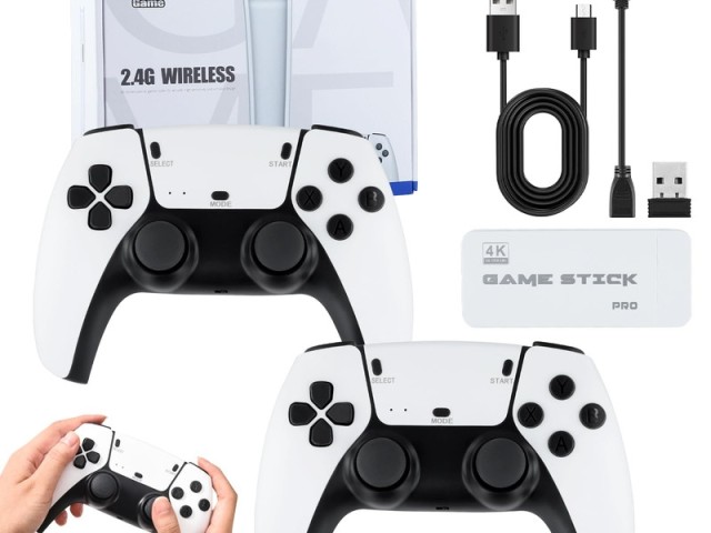 کنسول بازی 4K Ultra 3D Game Stick Pro همچنین دارای 2 دستهی وایرلس است. این دستهها با اتصال 2.4 گیگاهرتزی – که اتصالی بدون تأخیر و پایدار و سریع است – به کنسول متصل میشوند و بنابراین از بازیکردنِ بدون تأخیر با آنها لذت خواهید برد. همچنین انرژی این دستهها از طریق دو باتری نیمقلمی یا AAA تأمین میشود و به این ترتیب برای مدتزمانی طولانی دغدغهای از بابت اتمام شارژشان نخواهید داشت.