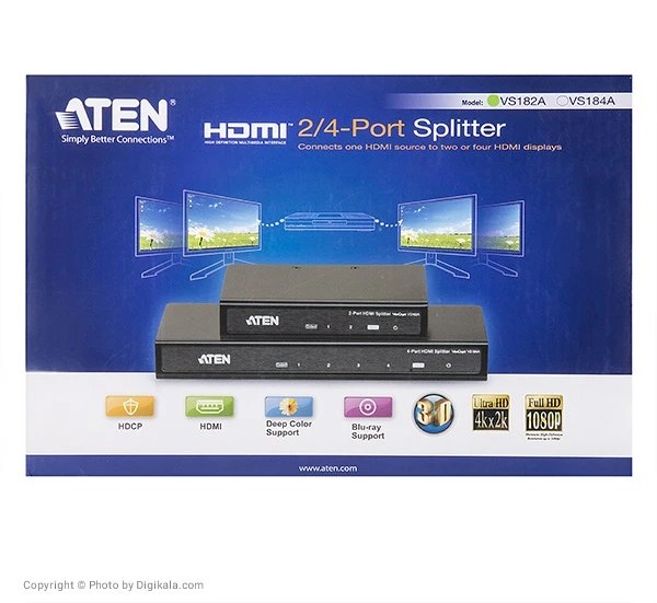 اسپلیتر HDMI، مدل «VS182A» وسیلهایست که میتواند تصویر دریافتی از یک تلویزیون و یا هر نمایش گر مجهز به پورت HDMI را هم زمان بر روی 2 نمایشگر دیگر منتقل کند. ابعاد این دستگاه جمع و جور است و به راحتی در مکان مورد نظر کاربران قرار میگیرد در قسمت پشتی بدنهی این محصول، یک ورودی و دو خروجی HDMI تعبیه شده است. این اسپلیتر میتواند کیفیت تصویر Full HD و 4K را پشتیبانی کند و این کیفیت را هم زمان بر روی دو تلویزیون انتقال دهد. همچنین، این مدل قادر است تصاویر سهبعدی را انتقال دهد. این مدل از سیستمهای صوتی Dolby True HD و DTS HD Master Audio پشتیبانی میکند و برای کاربر این امکان را فراهم میکند که علاوه بر تصویر باکیفیت، یکی از پیشرفتهترین فرمتهای صوتی را داشته باشد. این اسپلیتر قادر است تا شعاع 20 متری را تحت پوشش قرار دهد. به منظور سهولت در استفاده از این محصول، به همراه آن، یک آداپتور برق و یک کابل HDMI ارائه میشود.